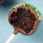 When dipping, make sure the chocolate fully covers the cake ball in one motion. Avoid swirling too much, as this can loosen the cake from the stick. Instead, dip straight down and lift straight up.