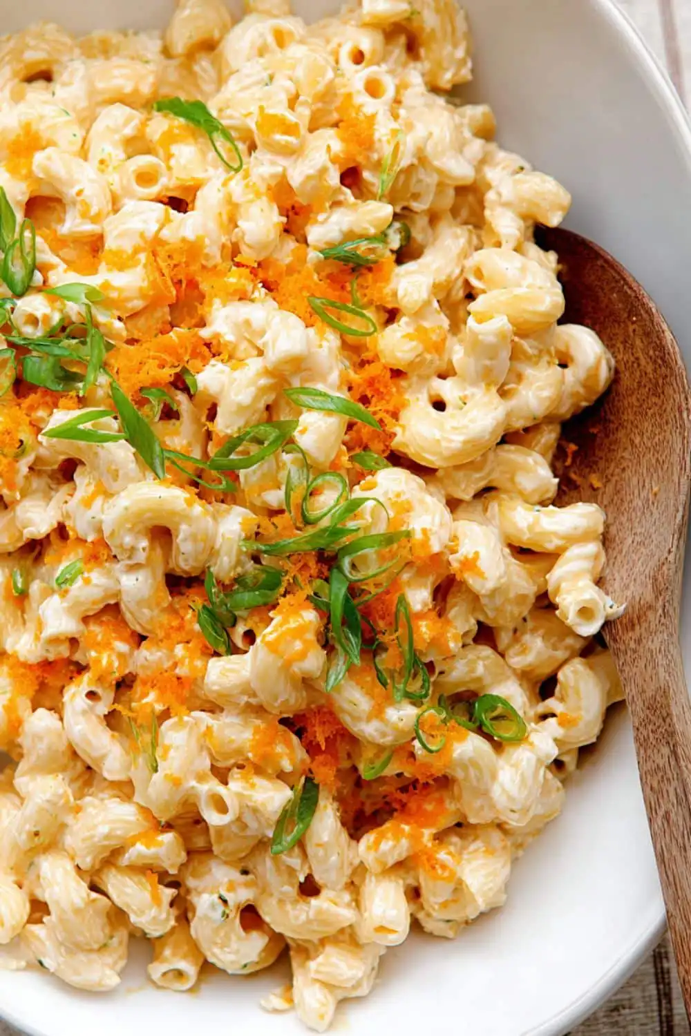 Hawaiian macaroni salad tastes best when served slightly chilled or at room temperature. The creamy dressing coats the pasta evenly, which creates a rich and smooth texture.