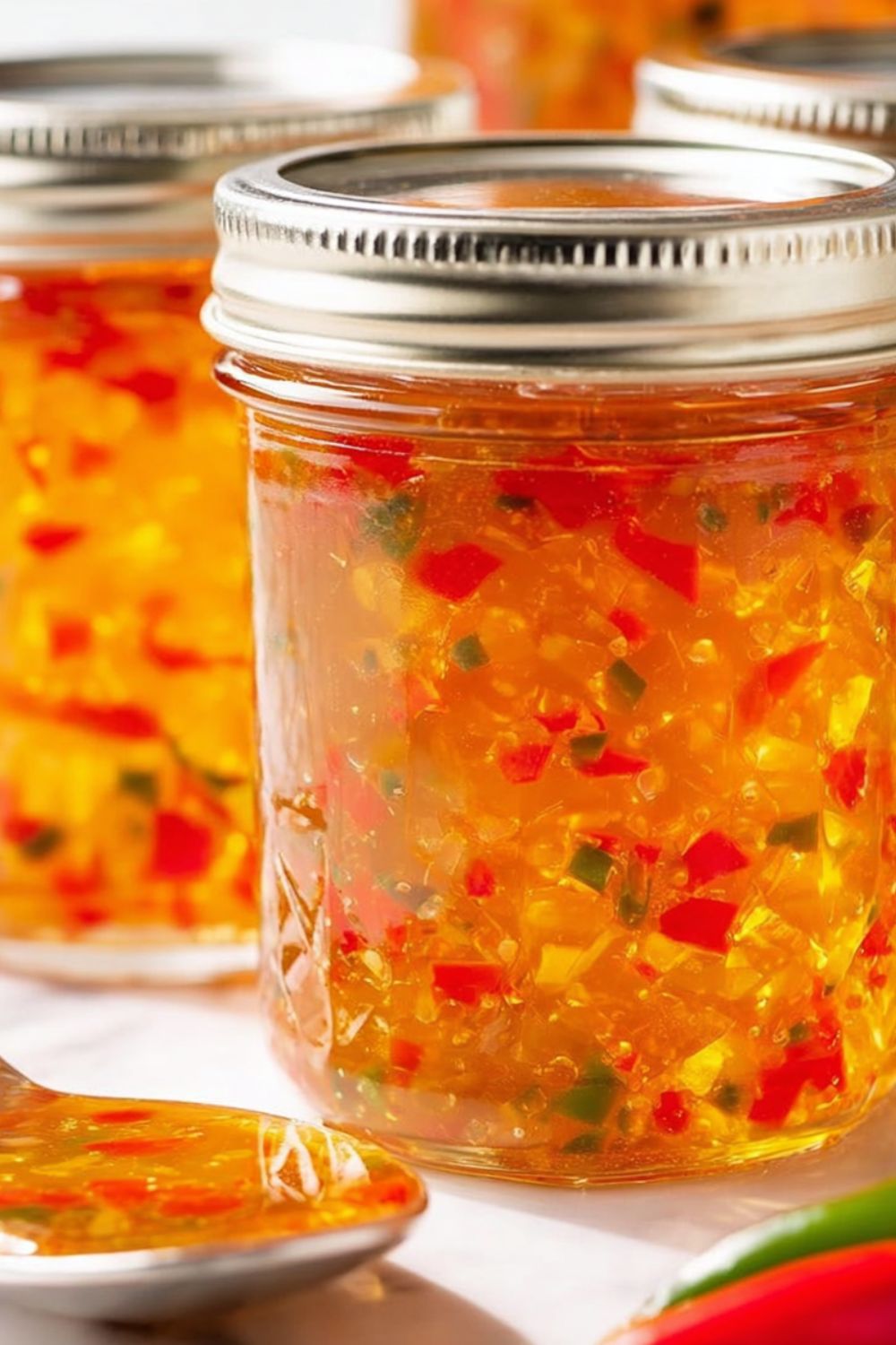 Use pepper jelly as a glaze for grilled chicken breasts or salmon fillets during summer entertaining. Swirl a spoonful into plain Greek yogurt for an unexpected vegetable dip at cookouts. Serve alongside pulled turkey sandwiches or layered into dessert cheesecakes for sweet-savory contrast at upscale brunches.