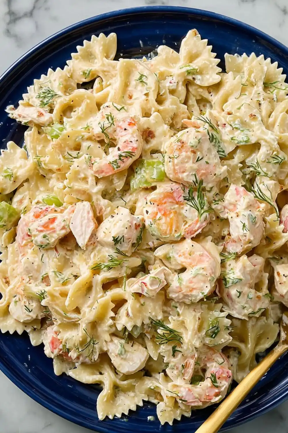 Creamy seafood pasta salad loaded with juicy shrimp and tender crab, tossed in a rich lemon dill dressing. This chilled pasta salad is fresh, flavorful, and perfect for summer meals, potlucks, or make ahead lunches.