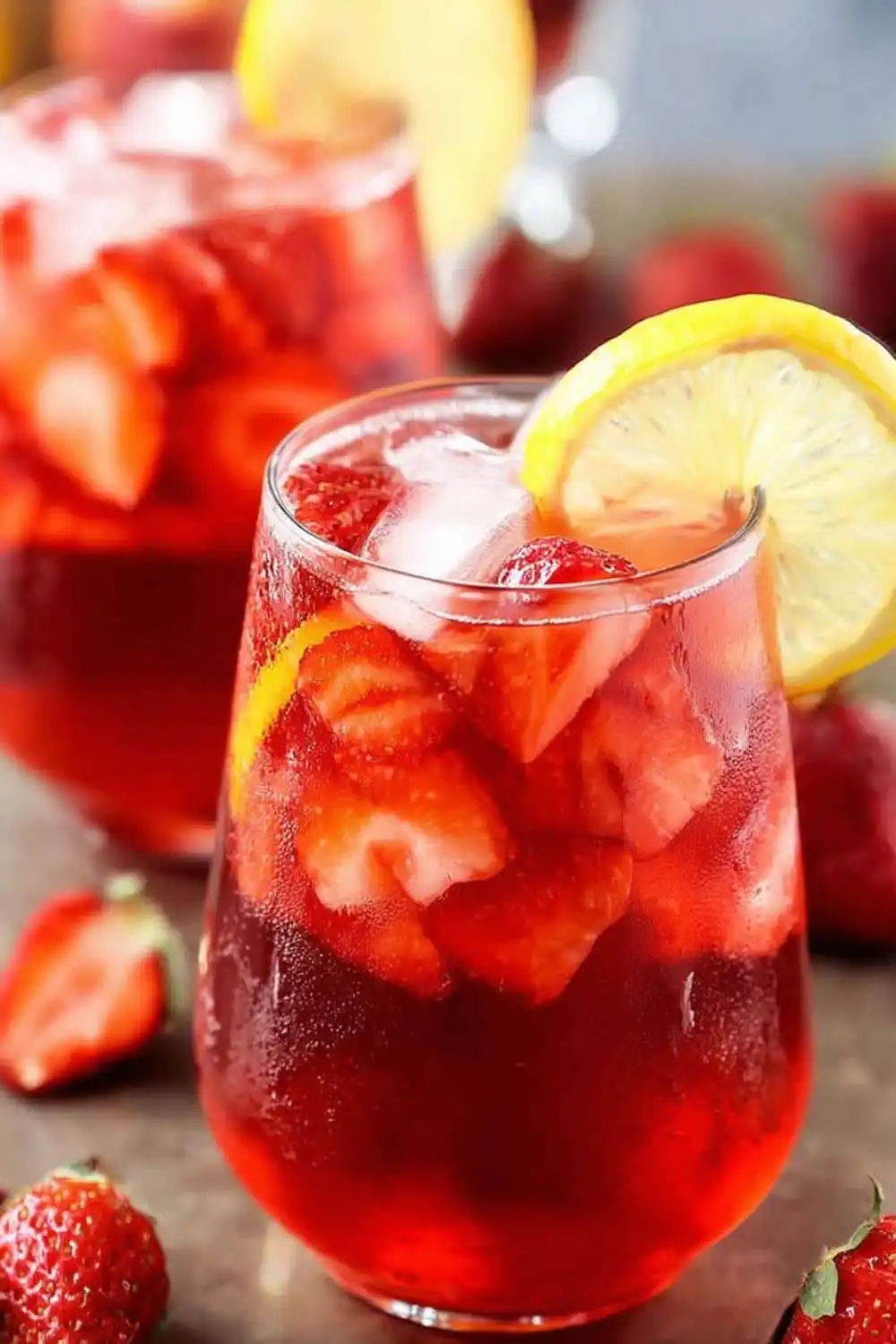 Fresh strawberries and lemon slices work well as garnish. They make the drink look bright and fresh when serving.